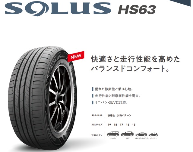 クムホタイヤ ソウルス 快適さと走行性能を高めたバランスドコンフォート。 優れた静粛性と乗り心地。走行性能と耐摩耗性能を両立。 ミニバン・SUVに対応。 (タイヤ代+交換工賃+廃タイヤ+ゴムバルブ+消費税/すべて含まれます。)