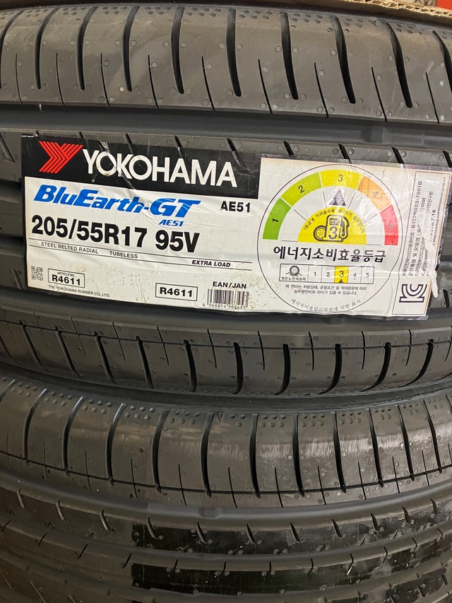 中古新品205/55R17 95V XL ヨコハマ BlueEarth-GT AE51 4本コミコミセット