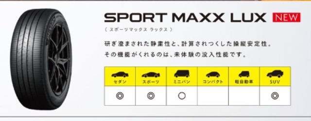 ダンロップ スポーツマックスラックス より進化した静粛性能に加えて、SPORTMAXXシリーズに相応しい操縦安定性能も確保したプレミアムコンフォートタイヤです。 (タイヤ代+交換工賃+廃タイヤ+ゴムバルブ+消費税/すべて含まれます。)
