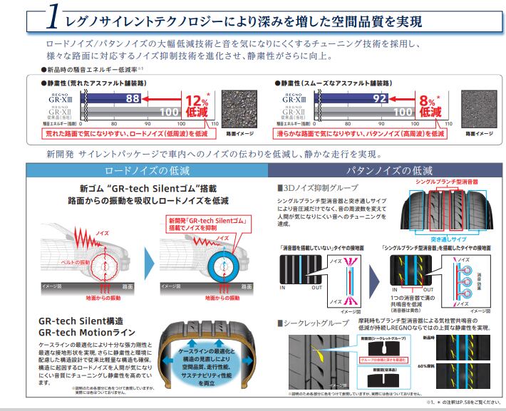 レグノ GR-X IIIは、レグノのコア・コンセプトである静粛性に加え、ハンドリング性にもエッジを効かせることで、“静か、やわらか、安らか、気持ちよい、滑らか”という“REGNO史上かつてない空間品質”と“質のよい乗り味”を両立した新しい“REGNO FEELING”をENLITENによる「究極のカスタマイズ」で実現。より深みを増した空間品質による静粛性や、磨き抜かれた走行性による走りそのものを体感できるとし、国産車だけでなく輸入車やBEV(バッテリ電気自動車)といった幅広い車種に“新たなREGNO FEELING”の価値を提供するとした。