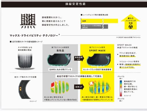 より進化した静粛性能に加えて、SPORTMAXXシリーズに相応しい操縦安定性能も確保したプレミアムコンフォートタイヤです。