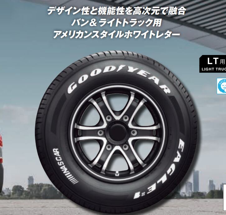 コンパウンドの配合を調整することによりWET性能が大幅進化。車検への適合(加重指数クリア)はもちろん、ふらつき感や辺摩耗など、1BOX特有の問題にも対応した第三世代ドレスアップ向けホワイトレタータイヤ「EAGLE #1 NASCAR PLUS」登場。