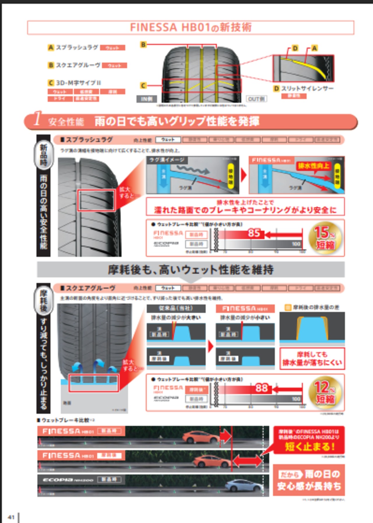 雨天時でもしっかり止まる・曲がる安心感を与えてくれる高いウェット性能。摩耗後まで性能を維持。また高い静粛性も実現し、走行時のノイズを抑え、快適な車内空間を実現いたします。(タイヤ+交換工賃・廃タイヤ処分・ゴムバルブ交換込みの商品です。)