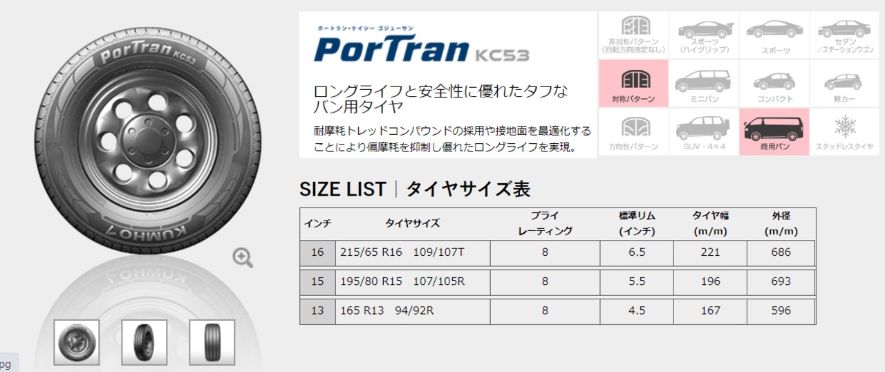 165R13 8P 94/92R クムホ PorTran KC53 4本コミコミセット